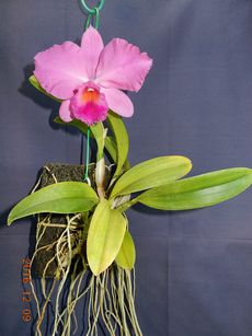 右は鮮やかな黄色一色のカトレアで、バルブ長約30cmのためミディとも言える品種です。