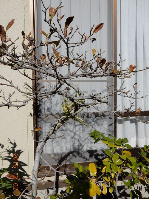 秋以降、庭木の水やりもたまにやる程度となり、庭木着け富貴蘭も晴天が続いた4,5日後に全体を濡らしてやる程度です。