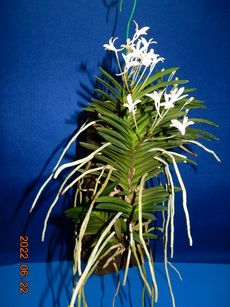 風蘭の花芽が葉脇から出た時から開花まで、採光をやや強くすると良いと思います。