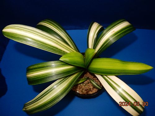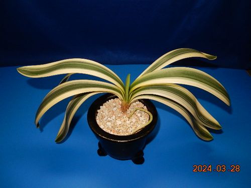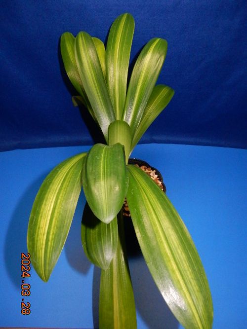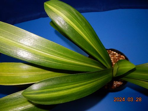 派手な覆輪斑は生長も極端に遅く、写真の株に花は一度も咲いていません。